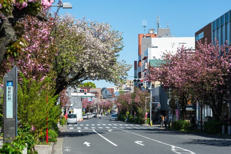桜新町を訪れたのは桜の季節。 東急田園都市線の桜新町駅の地上出口を上がると、やわらかな春の光に包まれた桜の隣で