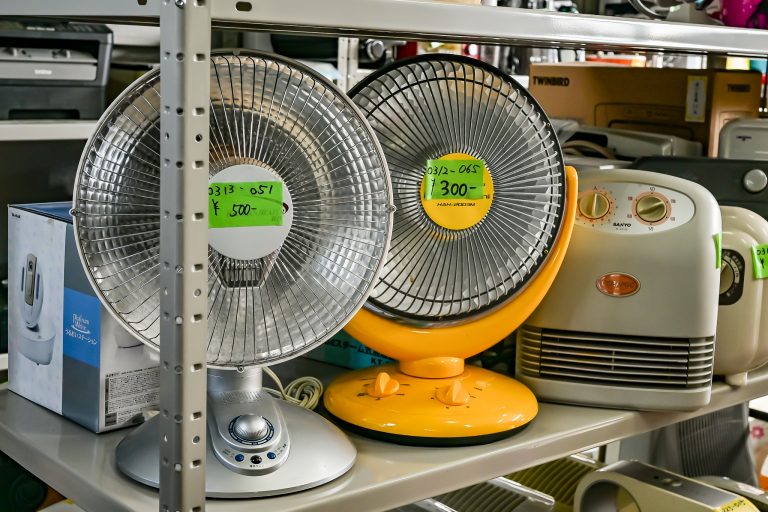 せっかくなので、販売されているリユース品を見ていくことにしました。オープントースター、ハロゲンヒーター、扇風機、パン製造器、子供用玩具、スキー板、ゴルフ道具、イス、トランポリン、三段ボックス、美顔器など!どれもリーズナブルなお値段ですが、なかには無料のものもあります。嬉しいのは電源が用意されていること。気になった家電製品はその場で動作確認が可能です。