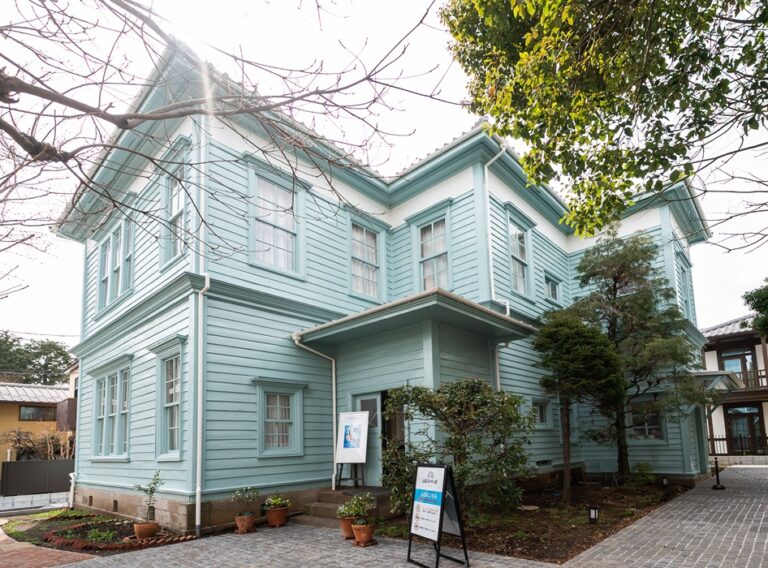 招き猫のお寺として知られる古刹「豪徳寺」の裏手にひっそりと佇む「旧尾崎テオドラ邸」は深い歴史と文化を感じさせる、水色の洋館。近年は建造当時の美しさを保ちつつ改修され、2024年3月に文化とアートが息づく場としてオープンしました。