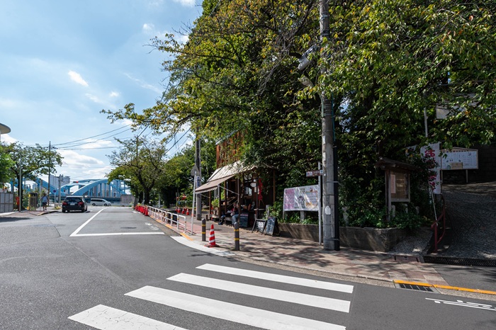 東急東横線、目黒線、東急多摩川線が乗り入れる「多摩川」駅を降り、川の流れを目指して歩くと、高台にひっそりと佇む多摩川浅間神社が現れます。