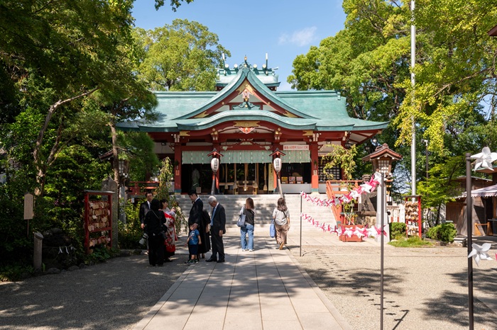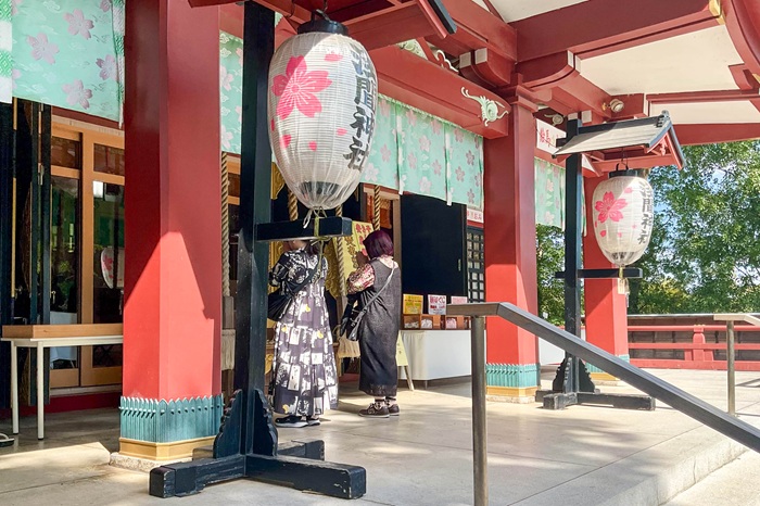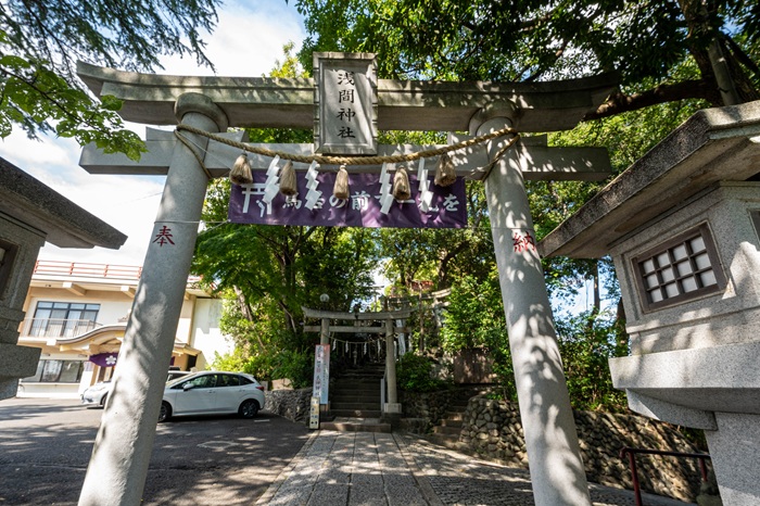 参道を彩る風車も風に揺れて回り続け、まるで木花咲耶姫が優しく出迎えてくれているかのよう。春になると桜の木が花開き、淡いピンクの光に包まれた境内は目を潤してくれることでしょう。
