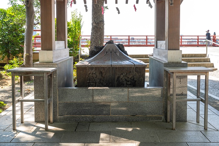 これは富士山の噴火で流れ出た溶岩で、社殿が鎮座する高台を富士山と見立てて登る「富士講(ふじこう)」の信仰と深く結びついています。