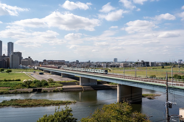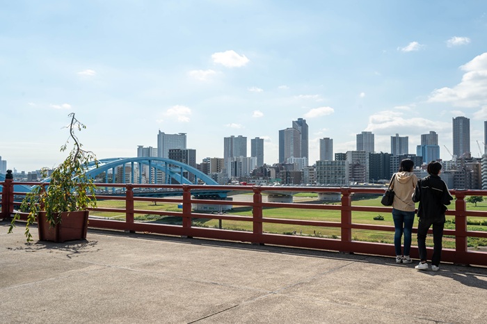 多摩川方面に進むと、青空から“青色“がなだれこんでくるかのような展望台に出ます。