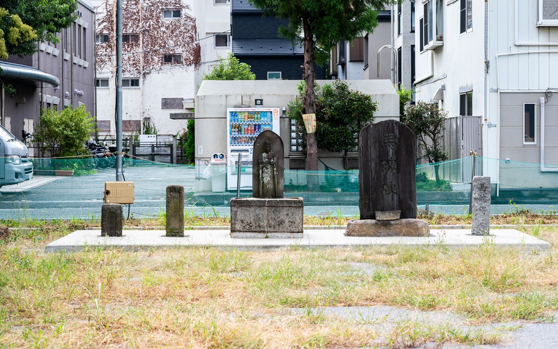1930(昭和5)年に建てられた碑は、当時この地にあった騎兵第1連隊の軍馬を慰霊するもので、今でも蹄鉄や人参が供えられ、手を合わす人々の姿が見られます。
