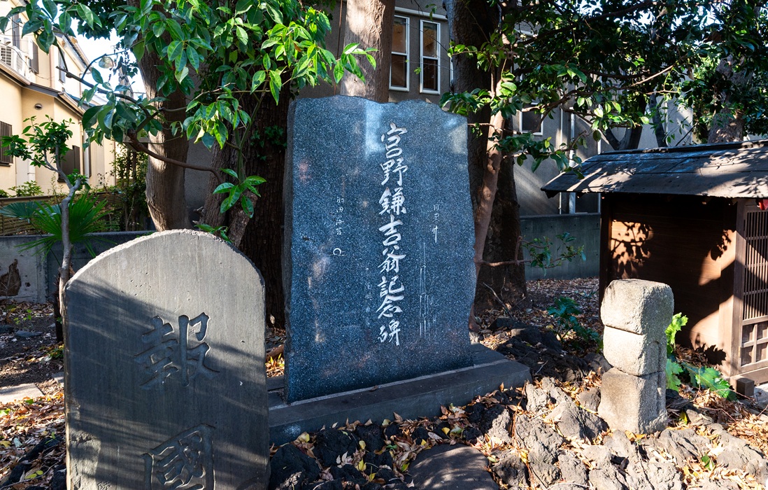 庭園の一角に佇むのは、宮野家四代目の宮野鎌吉(みやの かまきち)翁の功績をたたえた顕彰碑です。