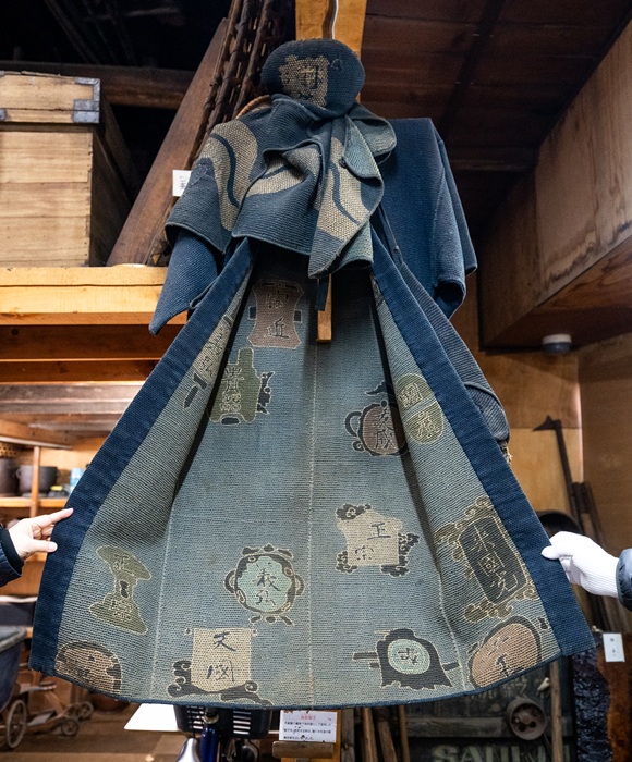 なかでも、江戸から明治にかけてのものと思われる防火服「消防刺子」と消火道具「龍吐水(りゅうどすい)」は貴重な展示物。まさか民家で火消しの装束や道具を目にするとは…。