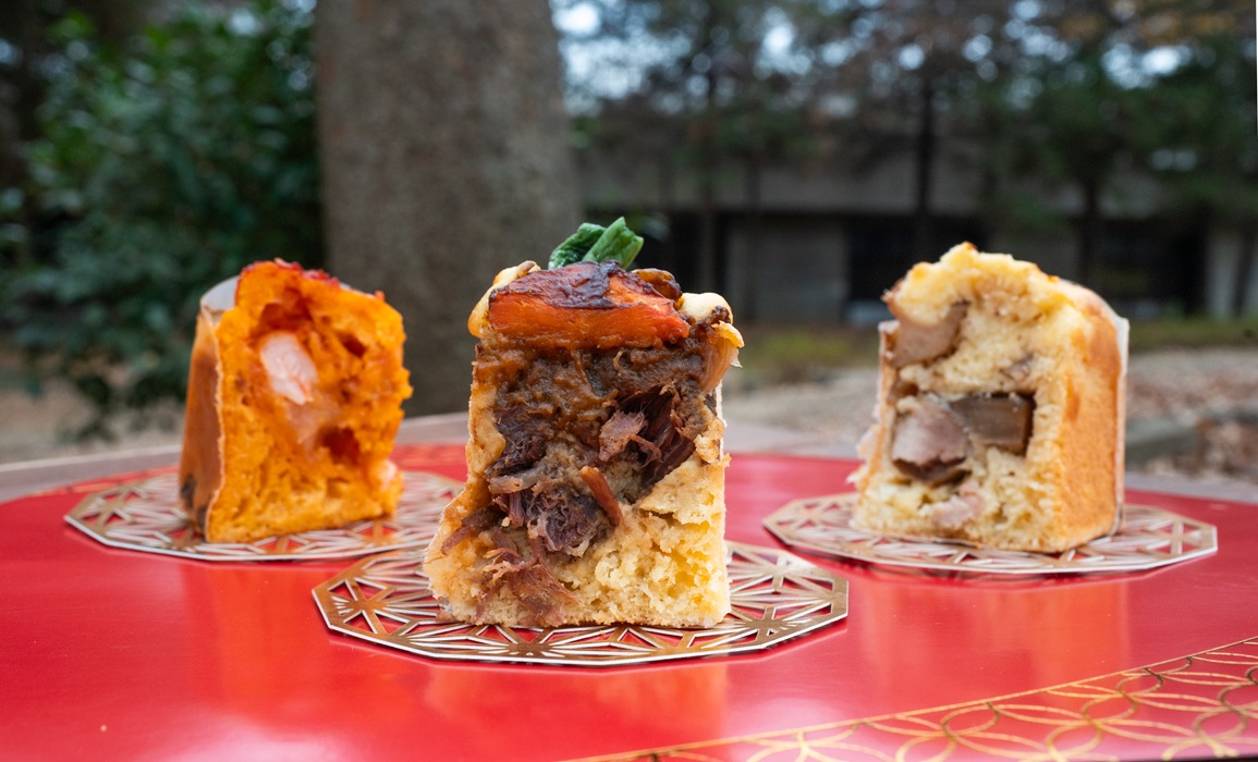ギフトボックスのなかには色とりどりのおかずケーキが整然と並び、その光景は思いがけない贈り物を渡された時の高揚感そのもの。