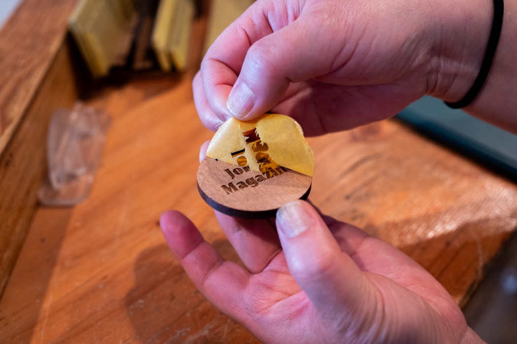 「レーザーカッターは、木材やアクリル、レザーなど、意外と幅広い素材に対応できるんですよ。慣れた方は自作のデータを持ち込んで制作に臨まれます。今日はこれを作ると決めて来られることが多いですね」とスタッフの方。