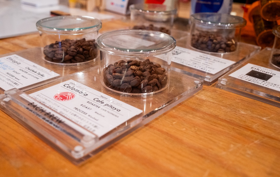 コーヒー豆のディスプレイも、お店の方がマシンを使って製作したそう。ものづくりへのワクワク感が募る