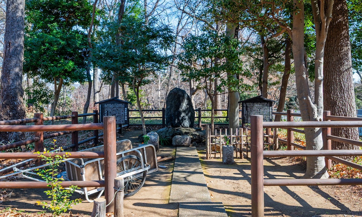この公園は、明治から大正にかけて活躍した作家・徳冨蘆花(とくとみろか、1868-1927)ゆかりの地。彼が1907年、40歳の時に青山高樹町から移住してきた終の棲家と宅地を整備して作られました。