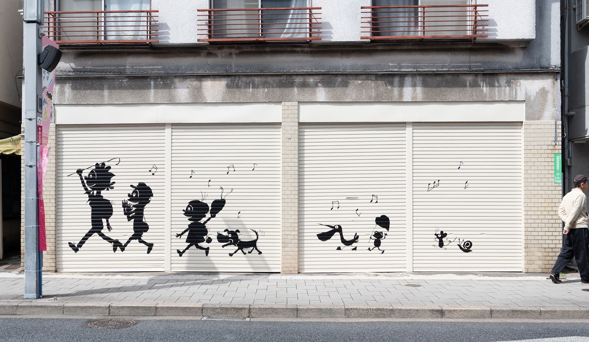 顔なじみの店員と挨拶を交わす買い物客が集まるスーパーマーケットに昔ながらの文房具店。十字架を屋根に掲げた教会に桜の花びらをモチーフにしたベランダを備えたマンション、その隣にはサザエさん一家のシルエットが描かれたシャッター…。日常のあちこちに、小さな物語がそっと織り込まれているのです。
