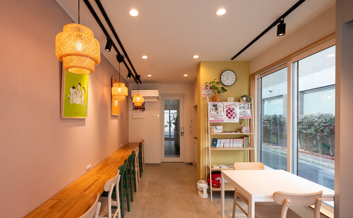 1階が開放されているうえ、電源まで用意され、誰でも気軽に立ち寄れる休憩スペースとして機能しています。ここでは、オリジナルのサザエさんグッズも販売され、商店街と長谷川美術館との親密なつながりが、さりげなく伝わってくるよう。さらに、ここでは月に1度、地元の人が健康や医療・介護の相談ができる「暮らしの保健室」も開かれています。