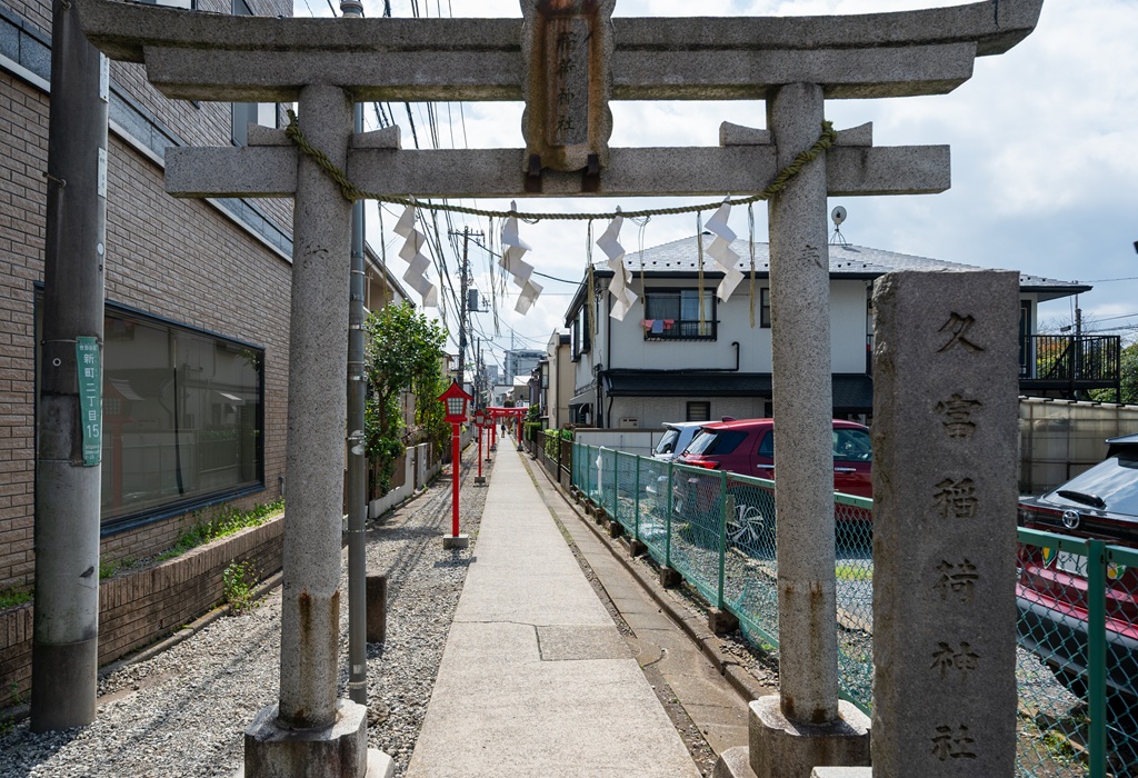 さらに進むと、パティスリーやカレー屋など個性的な外観のお店が顔を並べ、ふと横道に目をやると、「久富稲荷神社」の鳥居が連なる光景が現れます。まるで異界への入り口のような、静かな迫力。