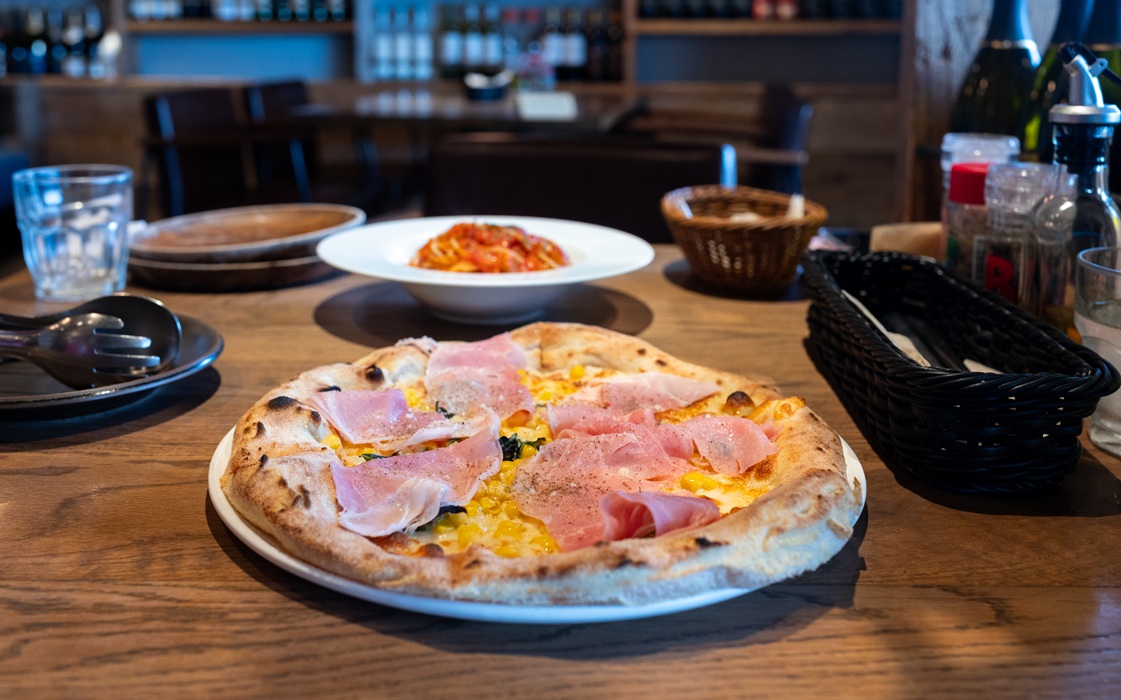 ウッディで落ち着いた店内には、ゆったりとしたソファ席も設けられ、子ども連れの家族からカップル、おひとり様まで、さまざまな客層が訪れます。一角には、ちょうど駅前通りの桜が眺められるテーブルもあり、桜を愛でながらカルディらしい世界各地の食材を生かしたメニューが楽しめます。