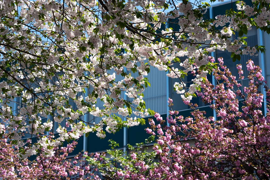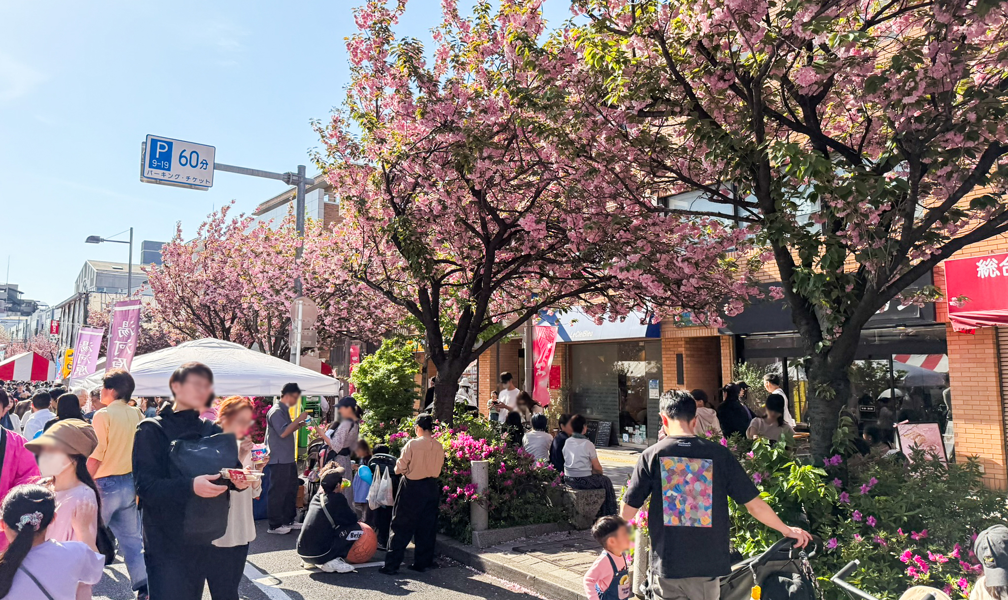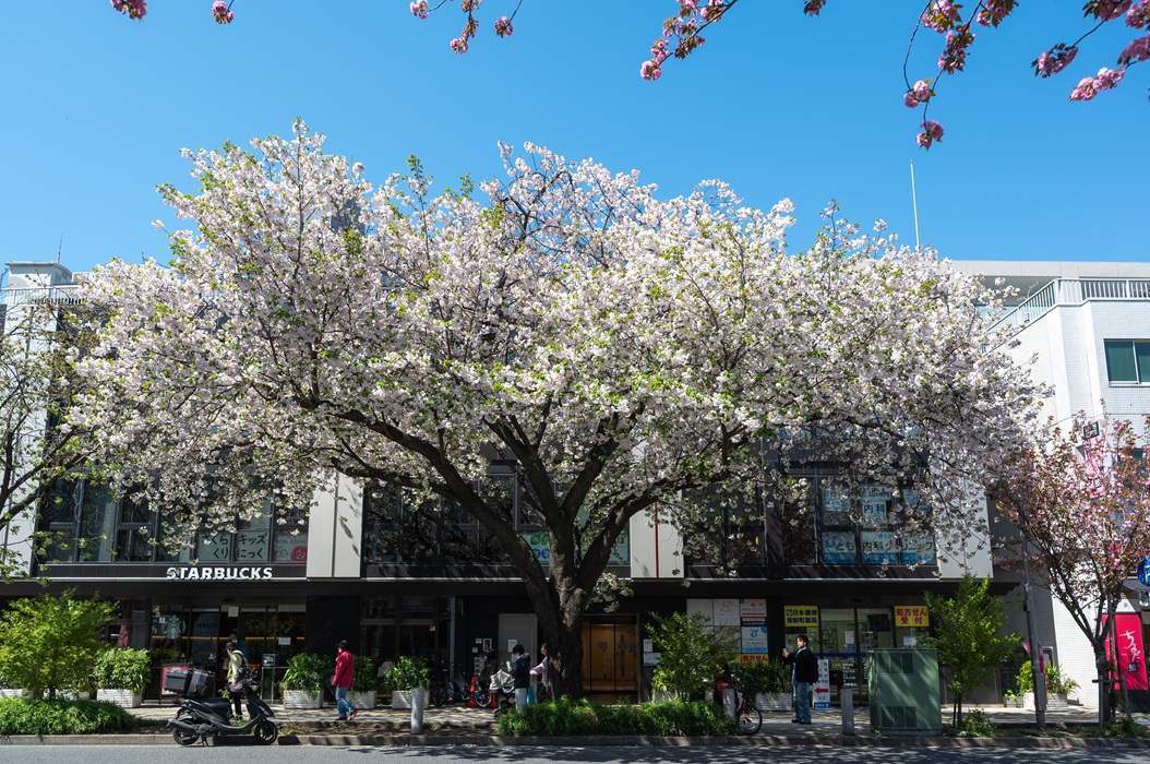 しかし、地下鉄の開通や道路の整備、そして老木化が重なり、多くの桜が伐採されました。駅前の通りに桜が植えられたのは1980年のことで、近隣の早咲きの桜が見頃を終える頃に代わって主役となる「八重桜」が選ばれました。その選択には街の桜を長く楽しみたいという地元の人たちの願いがあったといいます。今では毎年、申し合わせたようにピンクの綿帽子を被り、通りを行き交う人たちに春の訪れを伝えます。