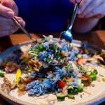ザルにお金を入れて洗い清める「一粒萬倍の泉」